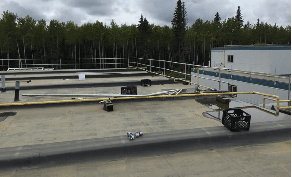 This northern Alberta Camp Operator wanted to install a guardrail as per section 139 of the Alberta OHS code to protection workers accessing this work area on a regular basis. MI Safety designed and installed a guardrail system that attached to the wall as roof attachment was not an option.