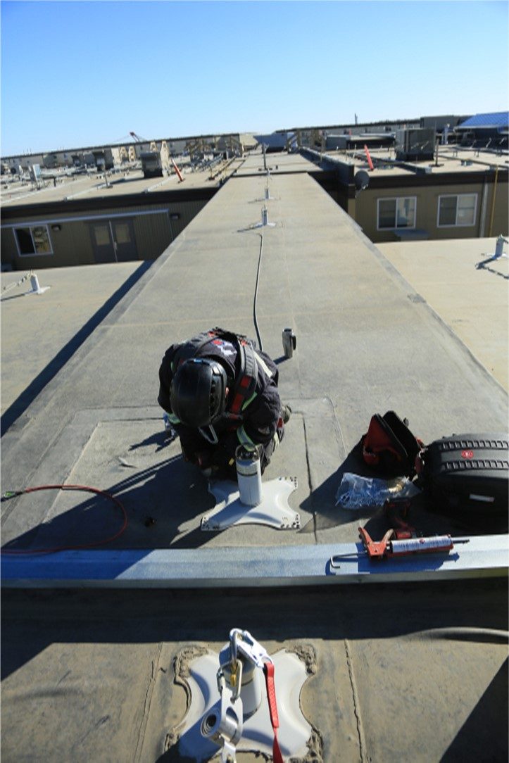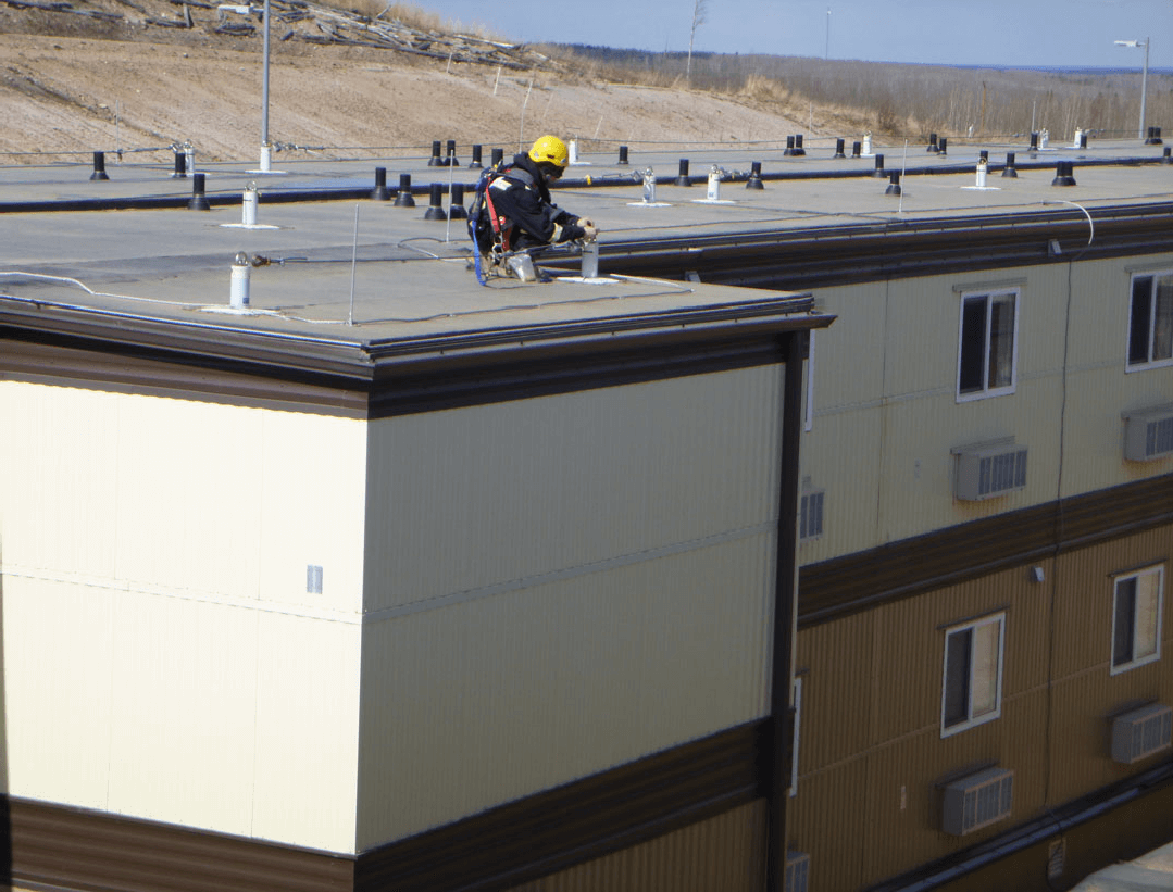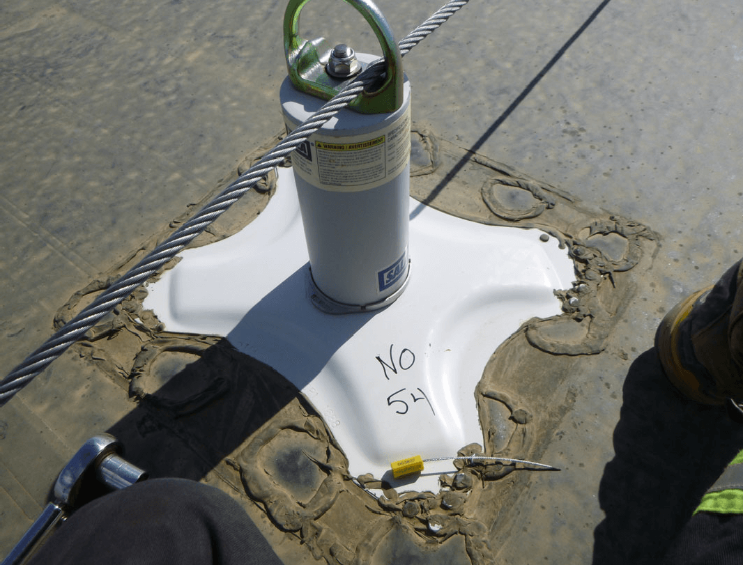 Northern Alberta Work Camp Operator. MI Safety installed these anchors in 2012 and have inspected and maintained these anchors over the last 7 years. The system is an Energy Absorbing Horizontal Lifeline system designed to be attached to a wood frame structure. Approximately 500 anchors and 250 horizontal life lines exist on this 3500 man camp. In the annual inspection we inspect all points, replace weather components and document any deficiencies for repair.