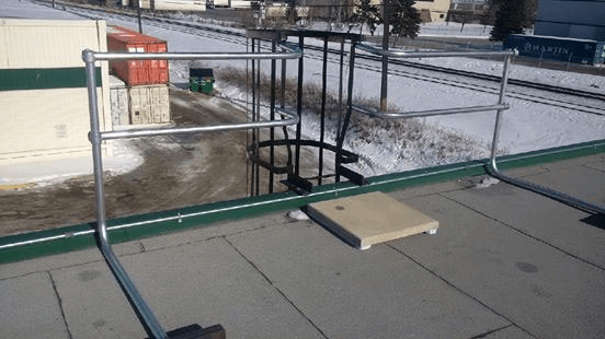 Security Guardrails - Do you need a guard to protect roof top workers or to keep trespassers off of your elevated work location or roof? We have designed chain-link fence systems that function to do both!